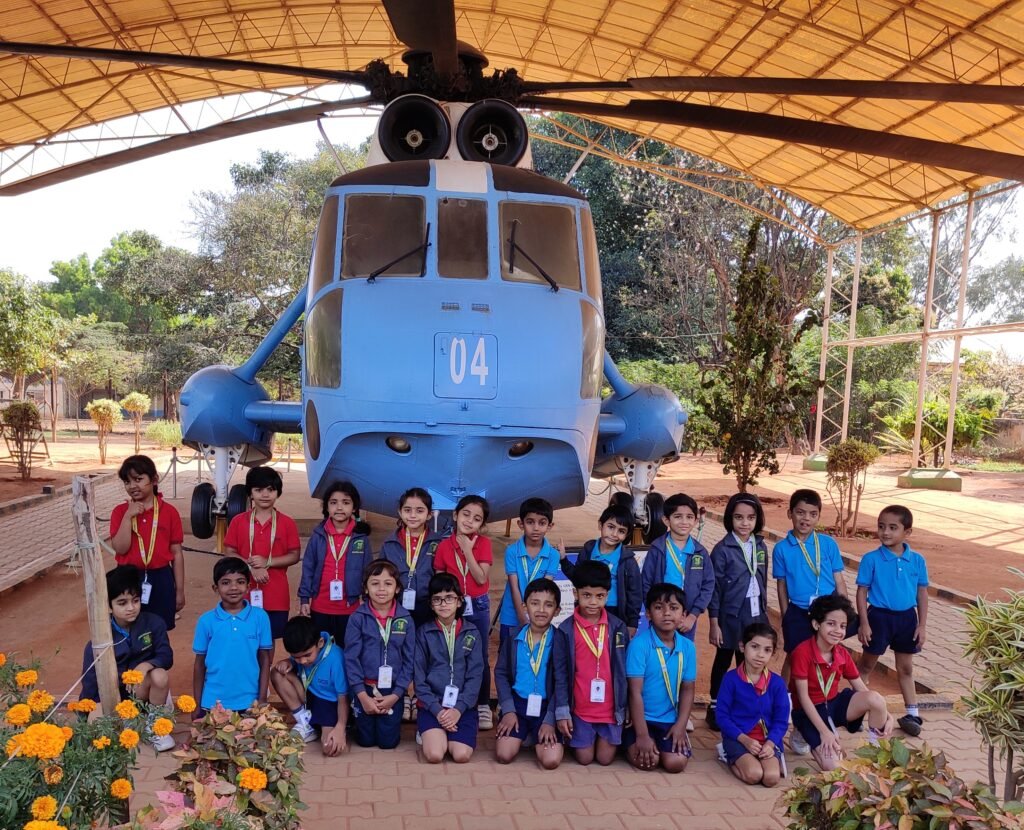The little munchkins of Kindergarten were overjoyed to visit the Hal Museum. The Bus journey to the museum was very interesting too. The Kids were amazed to see the aircraft and helicopter models. Many of them kept their teachers busy with all their questions about the various models they saw at the museum. It was indeed a memorable day for our Kindergarteners.